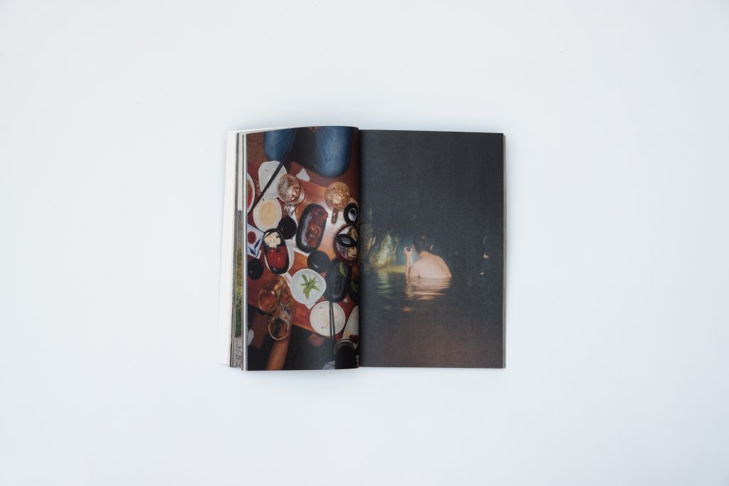 山谷祐介が、自然の中で自噴する整備のされていない温泉、「野湯」を撮影した『ONSEN』シリーズ。本書は野湯や入浴する人々の姿だけなく、旅での会話、車での道中、入浴後の晩餐と思わしき写真など、様々なシーンで織りなされていく。SNSを通して偶然集まったものたちが全裸になり、水の流れやなんらかの成分で変形変色した岩を踏み、野湯に入り、そして語らう。それは、かつてそこにあったものたちとの結節点になり、過去と山谷たちを、そして未来までをも融解していく。全裸になったときの肌寒さ、岩を踏みつけた時のヌルッとした感覚、温度調整されていない野湯の熱、目的のない語らいの楽しさ、どれも我々の身体を通して経験してきたのだ。