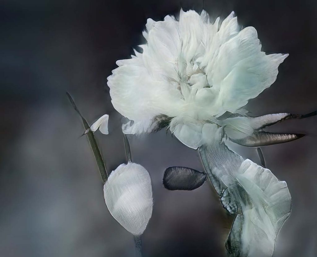創作は、完成した瞬間が一番楽しい。その後、「ああすればよかった」と思い、しばらくしてまた愛おしくなる。これらの花も同じです。ロックダウン中、存在しなくなったソフトウェアの中で、ほんの一瞬だけ存在した。そして今は、この本の中のイメージとしてのみ存在しているのです。