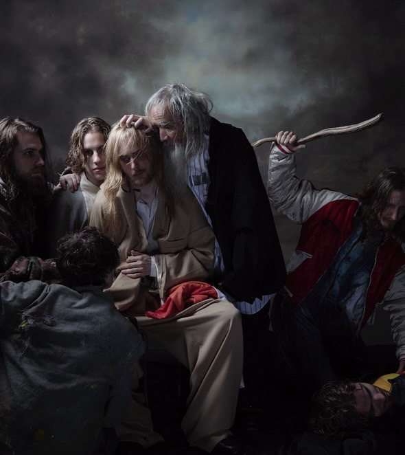 2026年春夏コレクション発表を兼ねた展示。モチーフは、宗教画における代表的なテーマ「ユダの裏切り(キリストの捕縛)」だ。アメリカ建国の1776年から現代2025年までの服飾をもとにコレクションを制作し、すべての時代を融合したスタイリングで構成。宗教絵画の構図を忠実に再現しながら、新しいビジュアル表現として写真に落とし込んだ。
