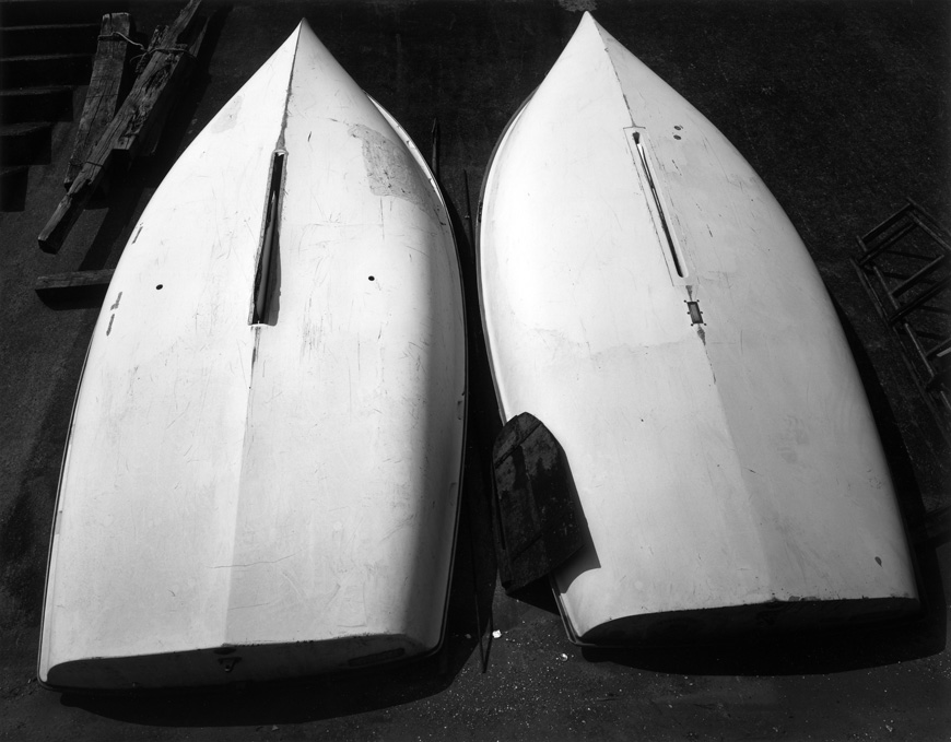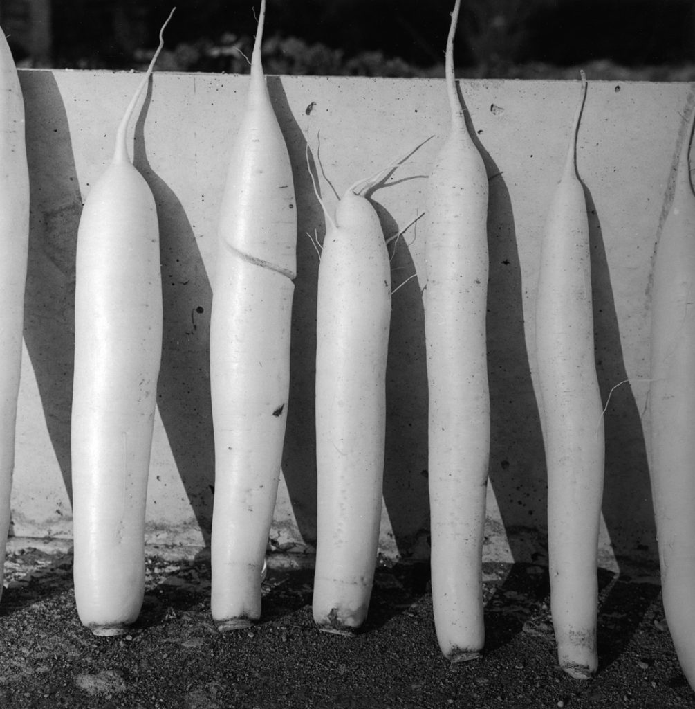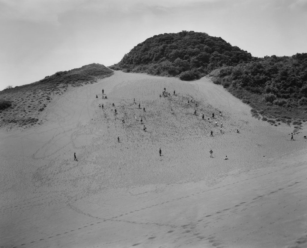 人々の姿や、自然の造形からまるで真空のレンズ越しに世界を覗いているような静けさと、純粋な世界の手触りを感じさせる三好の写真。16✕20インチ(40.7✕50.8センチ)という稀な大きさのネガフィルムから焼きつけられた作品たちは思わず目を見張る。