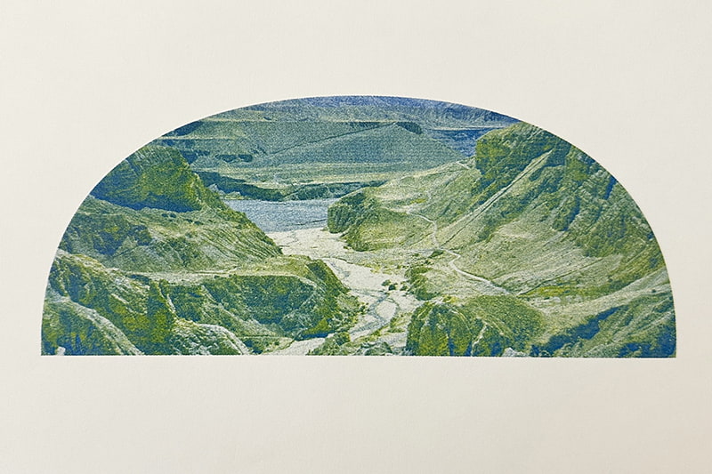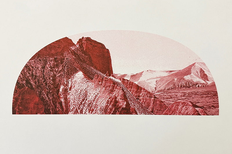 NEUTRAL COLORSより刊行されたリソグラフ印刷の本作は、半球型のフォーマットが特徴的。「風景に四角は必要か」という問いのもと、宇宙船のキューポラ、逆さにしたバカラの杯のイメージを用いて、津田の感じた浮遊感が表現されている。POSTでの展示は、本書の制作過程で刷られた単色プリントが、一点もののユニークピースとして展示、販売される。津田の生まれ育った神戸にあるVague Kobeでは、写真作品に加えて、津田がムスタンへの旅で出会い、手に取った欠片を用いて構成したインスタレーションが行われる。