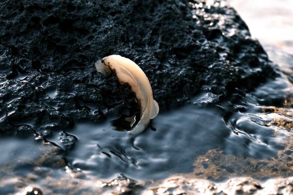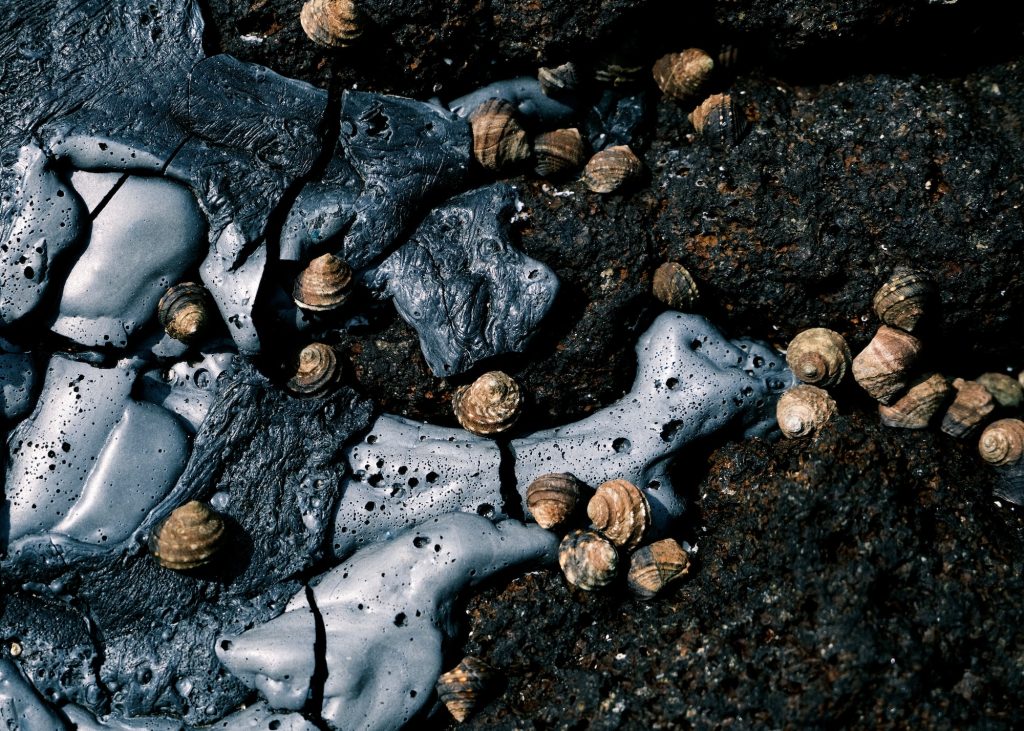 写真に写し出されるのは、単なる環境問題の記録ではない。むしろ、数億年の時間を経て生成された石油と、それを素材とするプラスチック、さらにそれが自然の力によって再び変容していく過程が、ひとつの時間軸として提示される。写真というメディアは、その断片を可視化し、人間の知覚を超えたスケールの時間を想像させる装置として機能している。