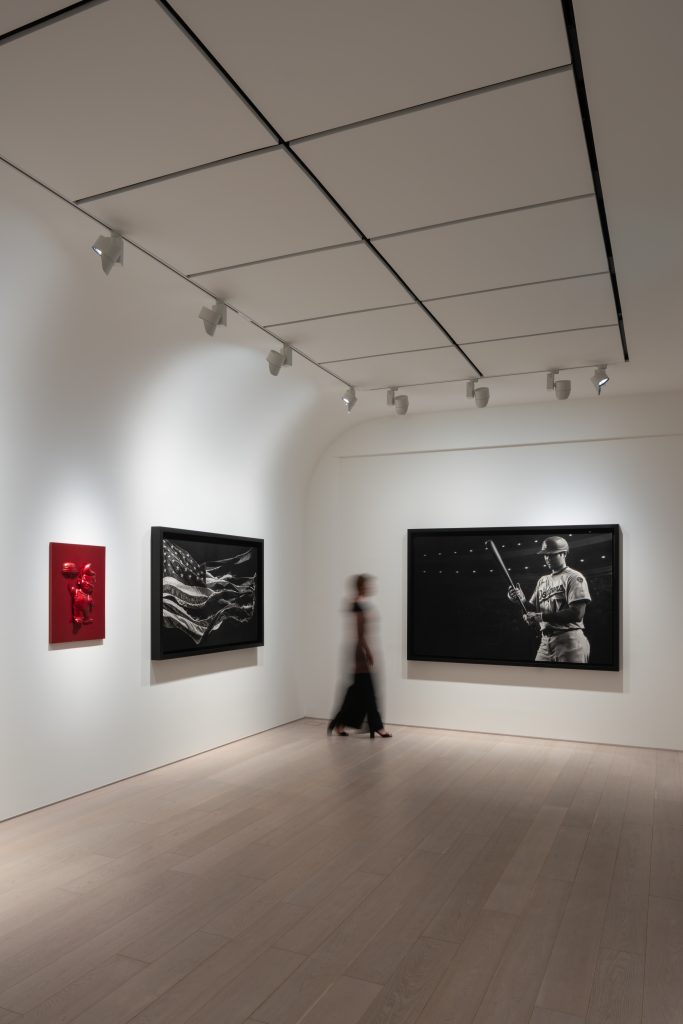 ロンゴは砕ける波、海に沈むクジラ、咲き誇る牡丹など、多様な象徴的なイメージを取り込みながら、文化を横断する寓話的な神話と古代の原型について探究する。ギャラリーの二つのフロアにわたる展示の中心となるのは、《無題(American Samurai)》と題された、ロサンゼルス・ドジャースのスーパースター大谷翔平を描いたドローイング。ロンゴにとって典型的なアメリカの娯楽である野球の世界で活躍する日本人選手としての大谷は、二つの文化の交錯を強く物語る存在なのだ。