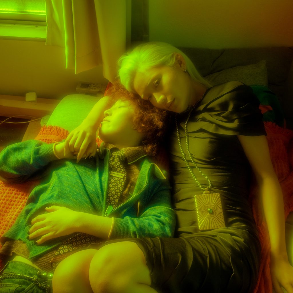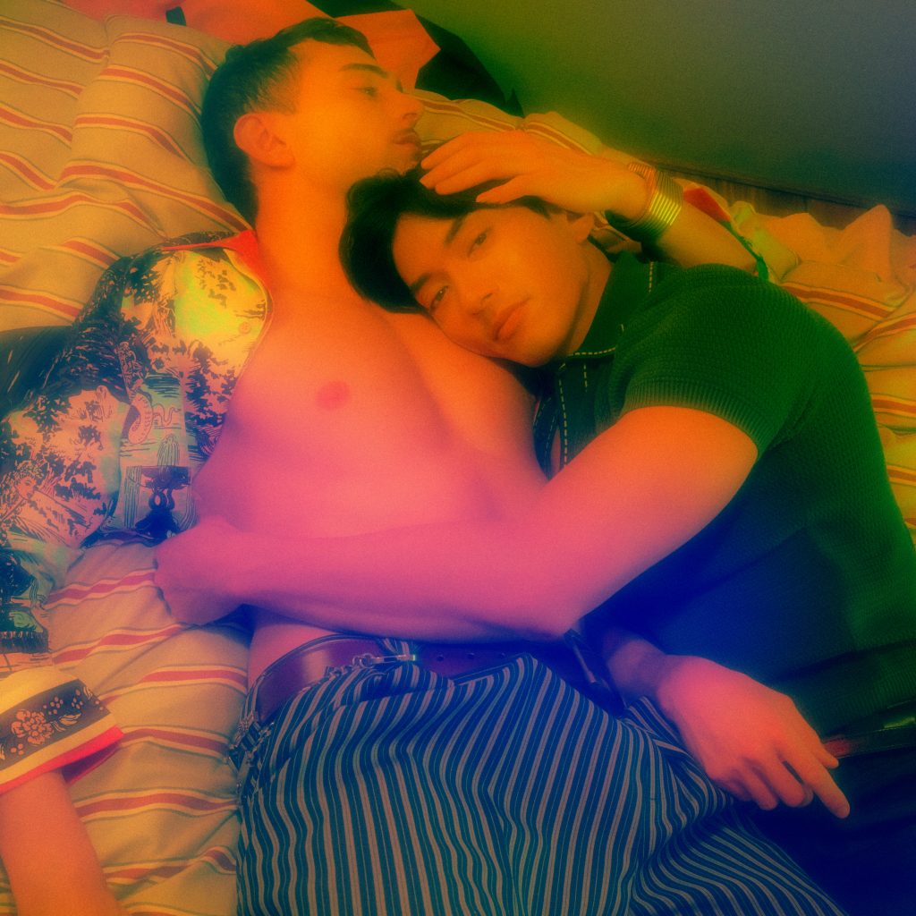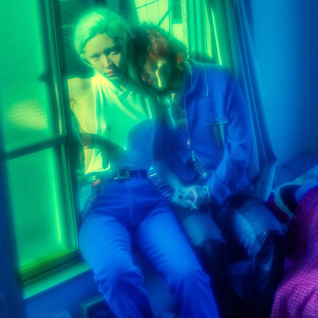 岡部らしい色彩とジェンダーを越境する被写体が絡み合うヴィジュアルに仕上がっている。